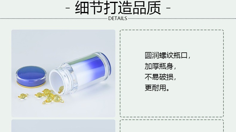 滄州明潔專注于生產100ml保健品瓶,藥品分裝瓶,鈣片瓶,膠囊分裝瓶,片劑塑料瓶,藥丸瓶,vc塑料瓶,顆粒瓶,中藥瓶,壓片糖果瓶,保健品瓶,產品規格眾多,款式新穎,品質過硬。