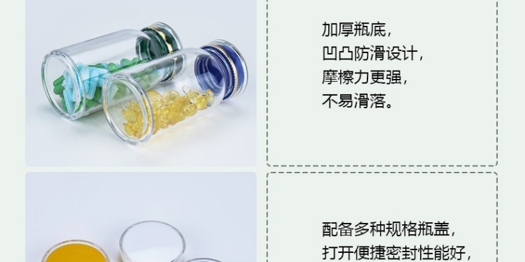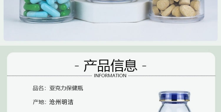滄州明潔生產銷售藥品分裝瓶,150ml藥片膠囊瓶,皇冠蓋膠囊瓶,斜肩瓶,pet膠囊瓶,NMN保健品瓶,軟膠囊瓶,亞克力瓶,壓片糖果瓶,藥片膠囊瓶,保健品塑料瓶,中藥丸瓶,避光塑料瓶,ps保健品瓶,產品規格多,外觀新穎,彰顯大氣。