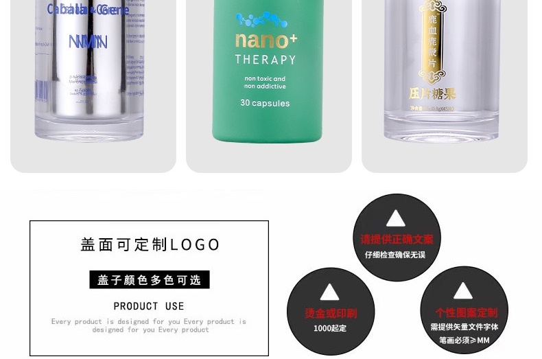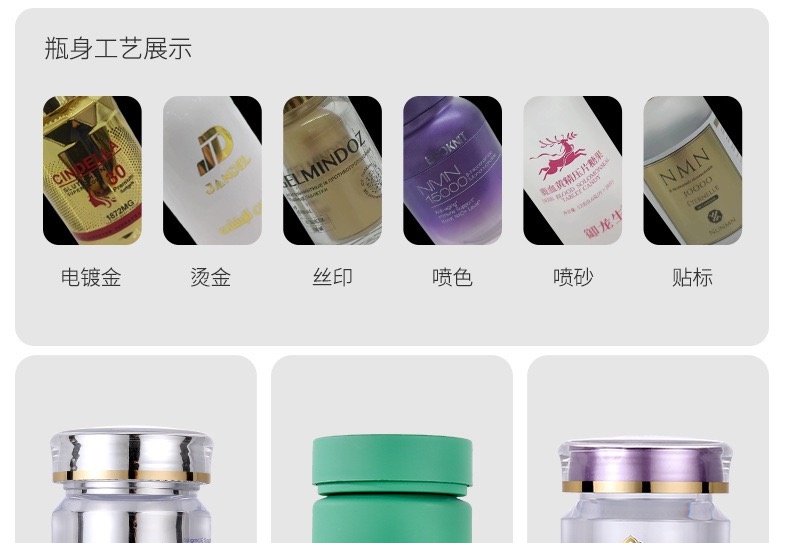 滄州明潔專注于160ml亞克力瓶,保健品膠囊瓶,NMN保健品瓶,膠囊瓶,內膽亞克力瓶,軟膠囊瓶,壓片糖果瓶,藥片膠囊瓶,避光塑料瓶,ps保健品瓶,固體片劑瓶,塑料藥瓶,產品規格多,外觀新穎,彰顯大氣。