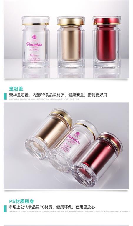 滄州明潔生產銷售亞克力瓶,避光塑料瓶,60ml皇冠蓋瓶,藥材罐,便攜式小藥瓶,藥片瓶,膠囊瓶,藥丸瓶,軟膠囊瓶,壓片糖果瓶,中藥丸瓶,避光塑料瓶,ps保健品瓶,固體片劑瓶,塑料藥瓶,產品規格眾多,外觀新穎,彰顯大氣。