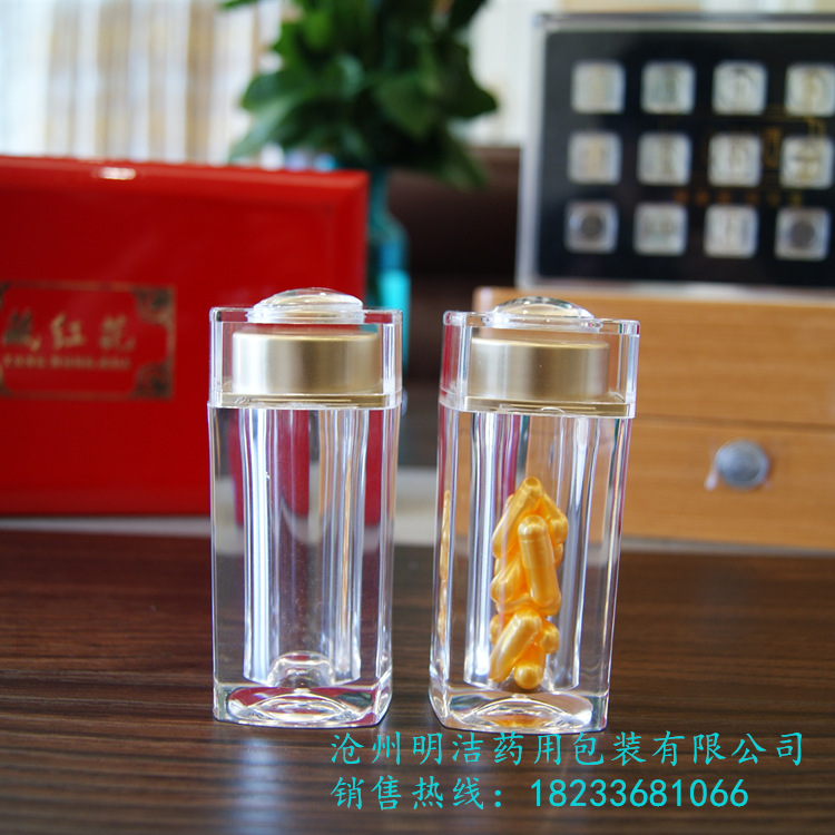 品名: 方形膠囊瓶 銷售熱線:18233681066 15833780666 網址:www.zgmingjie.com