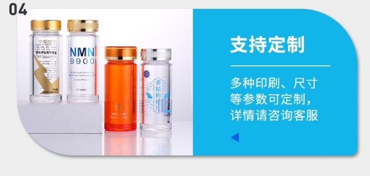 滄州明潔專注于保健品藥瓶,NMN膠囊瓶,NMN片劑瓶,藥品分裝瓶,90ml膠囊瓶,黃金蓋膠囊瓶,斜肩瓶,pet膠囊瓶,NMN保健品瓶,軟膠囊瓶,亞克力瓶,壓片糖果瓶,藥片膠囊瓶,保健品塑料瓶,中藥丸瓶,避光塑料瓶,ps保健品瓶,產品規格多,外觀新穎,彰顯大氣。