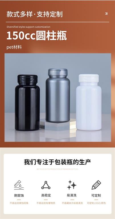 滄州明潔專注于生產壓片糖果瓶,魚油藥丸瓶,翻蓋塑料瓶,膠囊瓶,藥片瓶,含片瓶,中藥丸瓶,軟膠囊瓶,粉劑粉末瓶,pet塑料瓶,圓肩瓶,vc瓶,鈣片瓶,避光保健品瓶,醫藥包裝瓶。產品規格眾多,款式新穎。