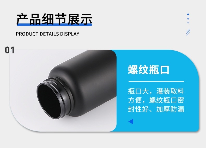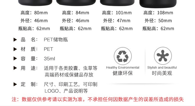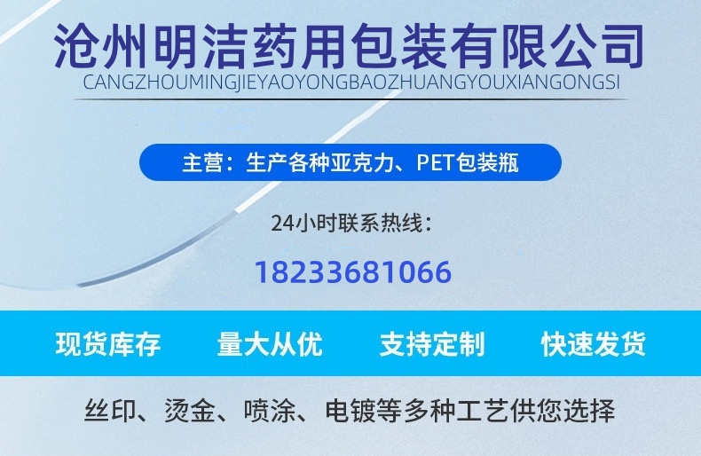 滄州明潔專注于生產磨砂避光保健品瓶,黑色藥瓶,100ml保健品瓶,藥品分裝瓶,鈣片瓶,膠囊分裝瓶,片劑塑料瓶,藥丸瓶,vc塑料瓶,顆粒瓶,中藥瓶,壓片糖果瓶,保健品瓶,產品規格眾多,款式新穎,品質過硬。