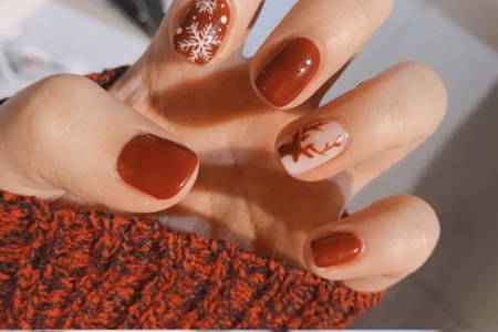 酒紅色迷離性感的顏色可以讓指甲變得光澤閃亮,圣誕節(jié)元素的添加更是錦上添花。白色的雪花只要畫出白色斑點(diǎn)_可以以假亂真,六角雪花看起來(lái)復(fù)雜其實(shí)很好畫。紅色鹿角分叉開,裝扮圣誕氣氛。