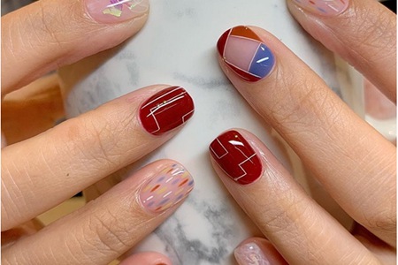 深紅色透著光,猶如醇厚紅酒的顏色。涂滿指尖上封層,用美甲筆蘸取白色甲油,在甲面畫出線條。充滿空間感的美甲具有_的摩登感,它不需要對稱相同的線條,只需要根據(jù)你的心意來創(chuàng)作。以淺色指甲油打造出的線條波紋間隔其中,讓沉郁的酒紅色也變得俏皮起來。